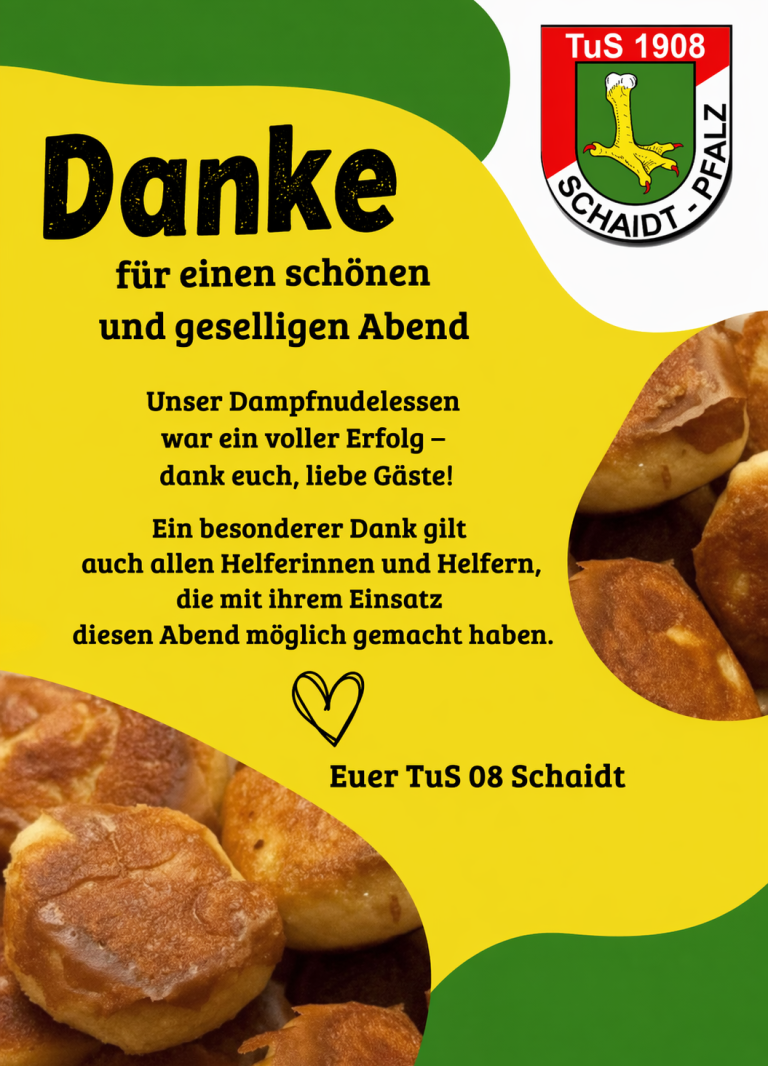 Eine besondere Premiere gab es ebenfalls: Zum ersten Mal fand der Dampfnudelgenuss im Clubhaus TuS 08 Hazir statt. Das wurde von den Gästen sehr positiv aufgenommen und trug ebenfalls zur gelungenen Veranstaltung bei.