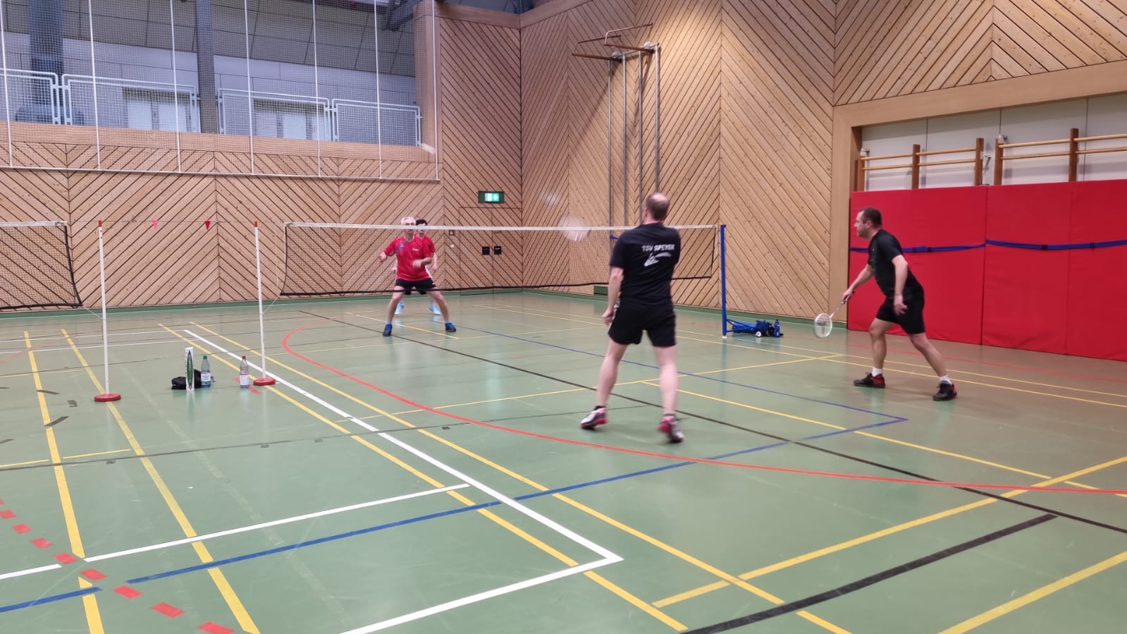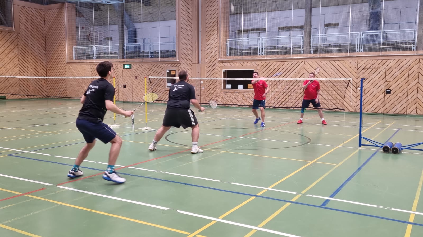 Nach der Begrüßung und Vorstellung der Paarungen ging es direkt in die ersten Spiele. Im 1. Herrendoppel lieferten sich Fabian Weber und Thomas Häfner ein spannendes Match. Nach gewonnenem erstem Satz mussten sie den zweiten abgeben und verloren schließlich knapp im dritten Satz. Das 2. Herrendoppel mit Sascha Plavcic und Werner Schuhmacher unterlag ebenfalls in zwei Sätzen, sodass wir zunächst mit 0:2 in Rückstand gerieten.