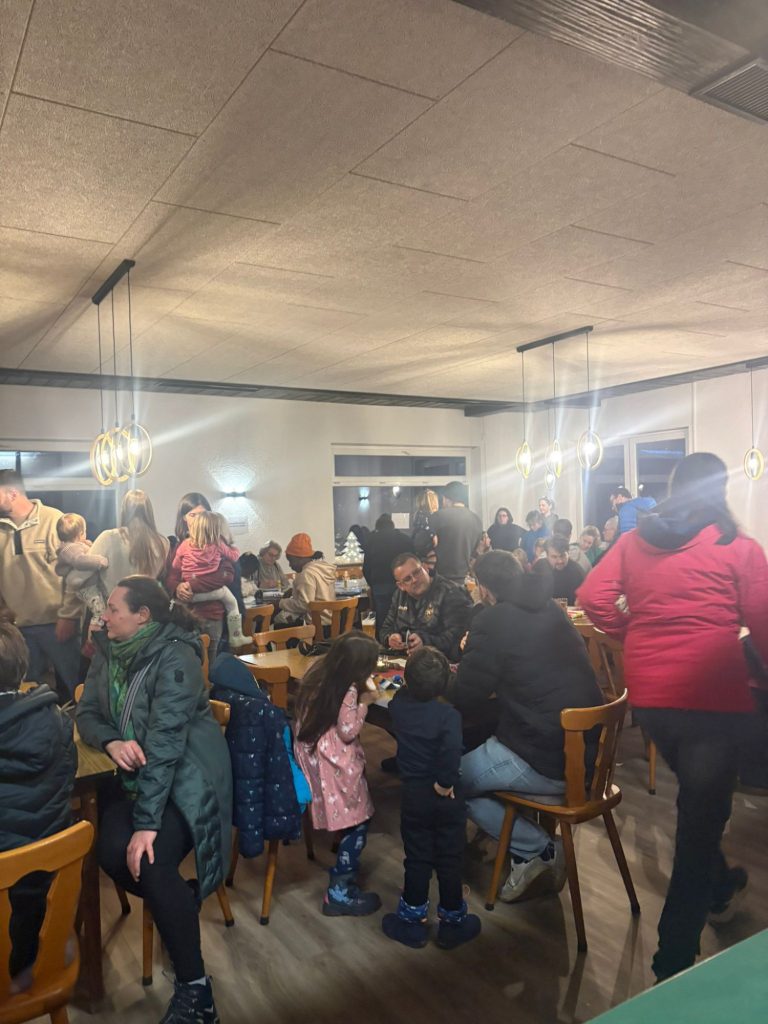 In der Vorweihnachtszeit wurde insbesondere an die jüngeren Mitglieder gedacht. Zahlreiche Kinder und ihre Eltern folgten am 4. Advent der Einladung zur Kinderweihnacht. Die Kinder konnten ihrer Kreativität beim Basteln freien Lauf lassen und hatten sichtlich Spaß an den verschiedenen Angeboten. Ein besonderer Höhepunkt war der Besuch des Weihnachtsmanns, der eine Weihnachtsgeschichte vorlas und damit für leuchtende Augen sorgte. Anschließend durfte sich jedes Kind ein Geschenk aus dem prall gefüllten Sack des Weihnachtsmanns aussuchen. Für weihnachtliche Stimmung sorgten nicht zuletzt Christbäume und Tannengrün, das uns freundlicherweise von Gärtner Alfons gestellt wurde.